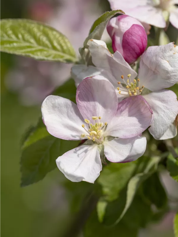 Malus domestica 'Pinova'(s) bildet hellrosafarbene Blüten ab April.
