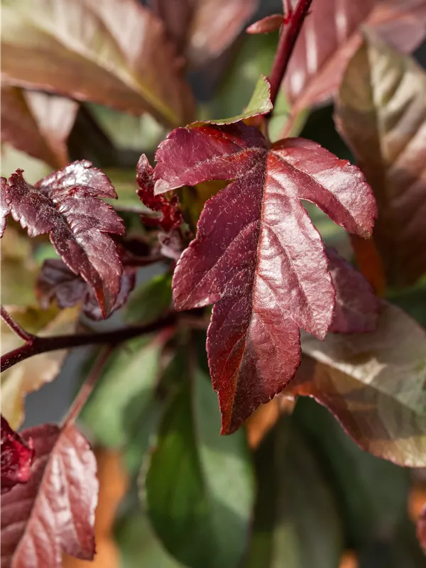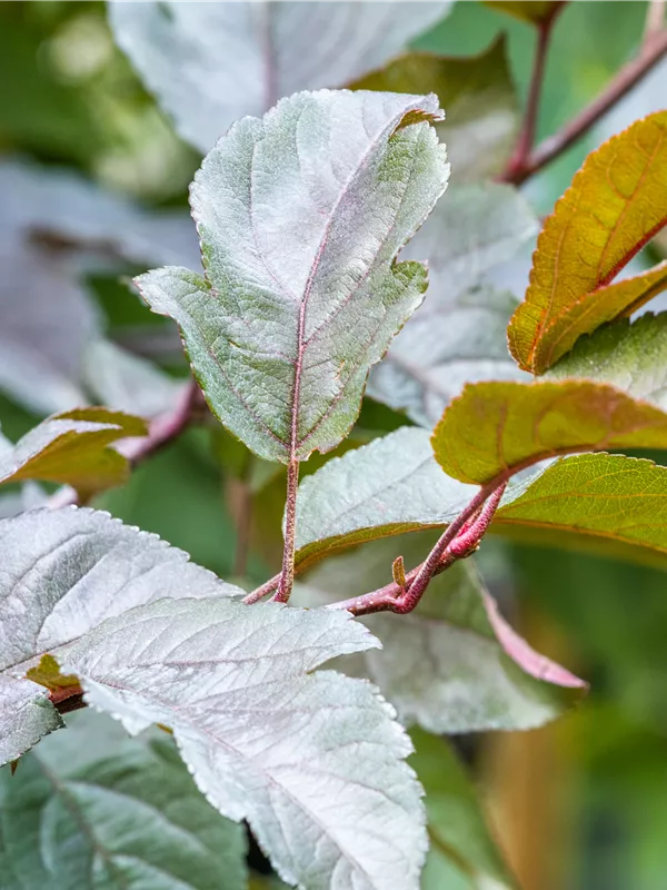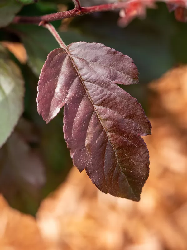 Besonders dekorativ sind die purpurroten, runden Früchte von Malus sargentii 'Scarlett'. Diese erscheinen ab Juli.