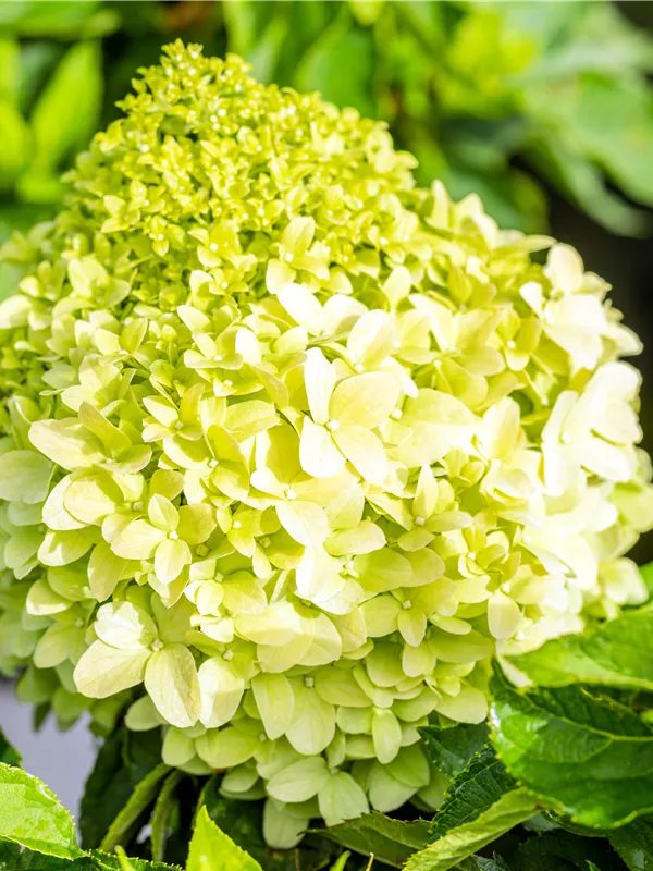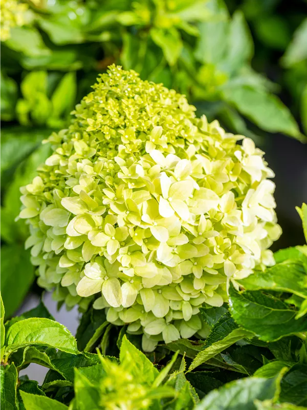 Die sommergrünen Blätter der Rispenhortensie 'Little Spooky' sind mittelgrün, lanzettlich.